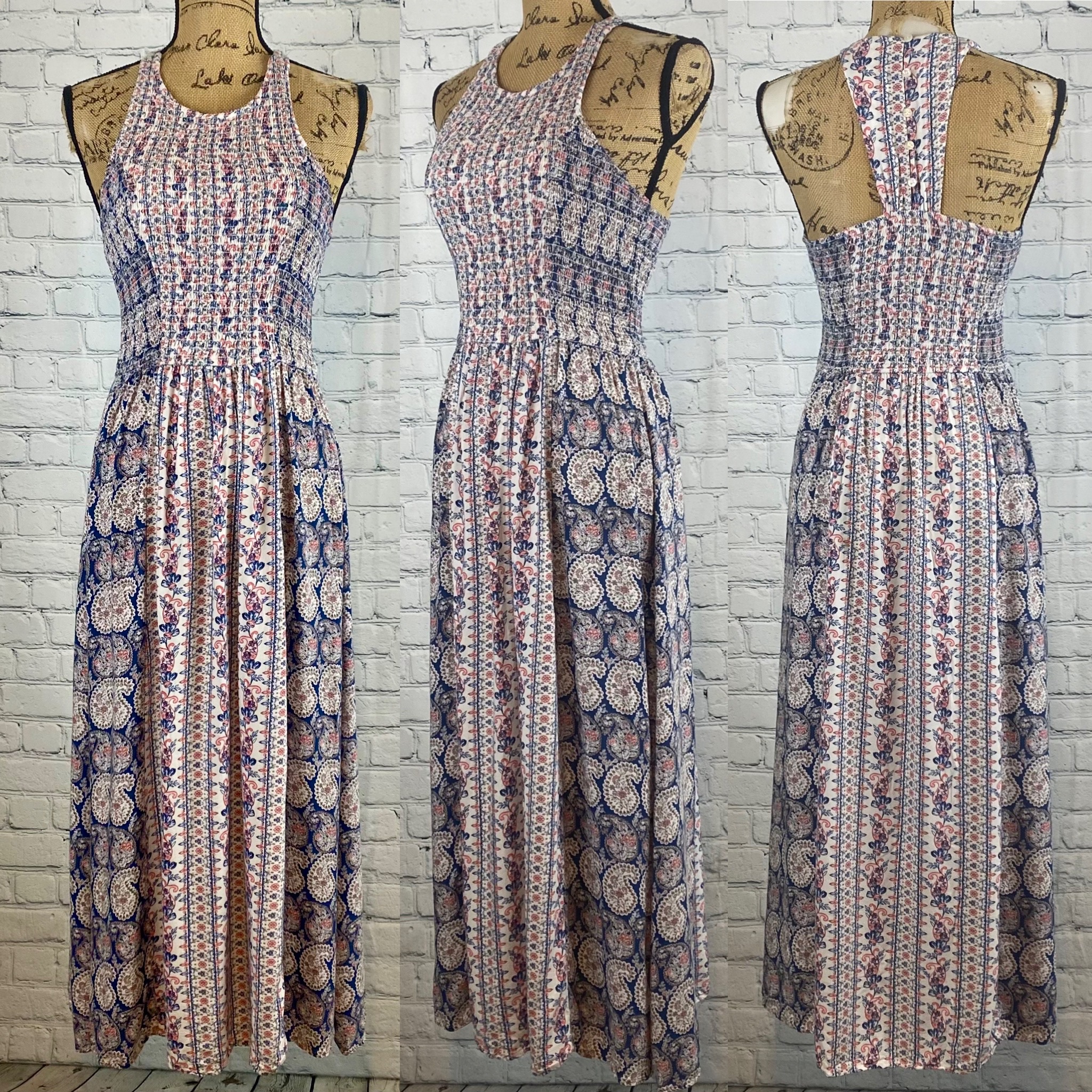 Japna Boho Floral Paisley Print Smocked Racerback Dress